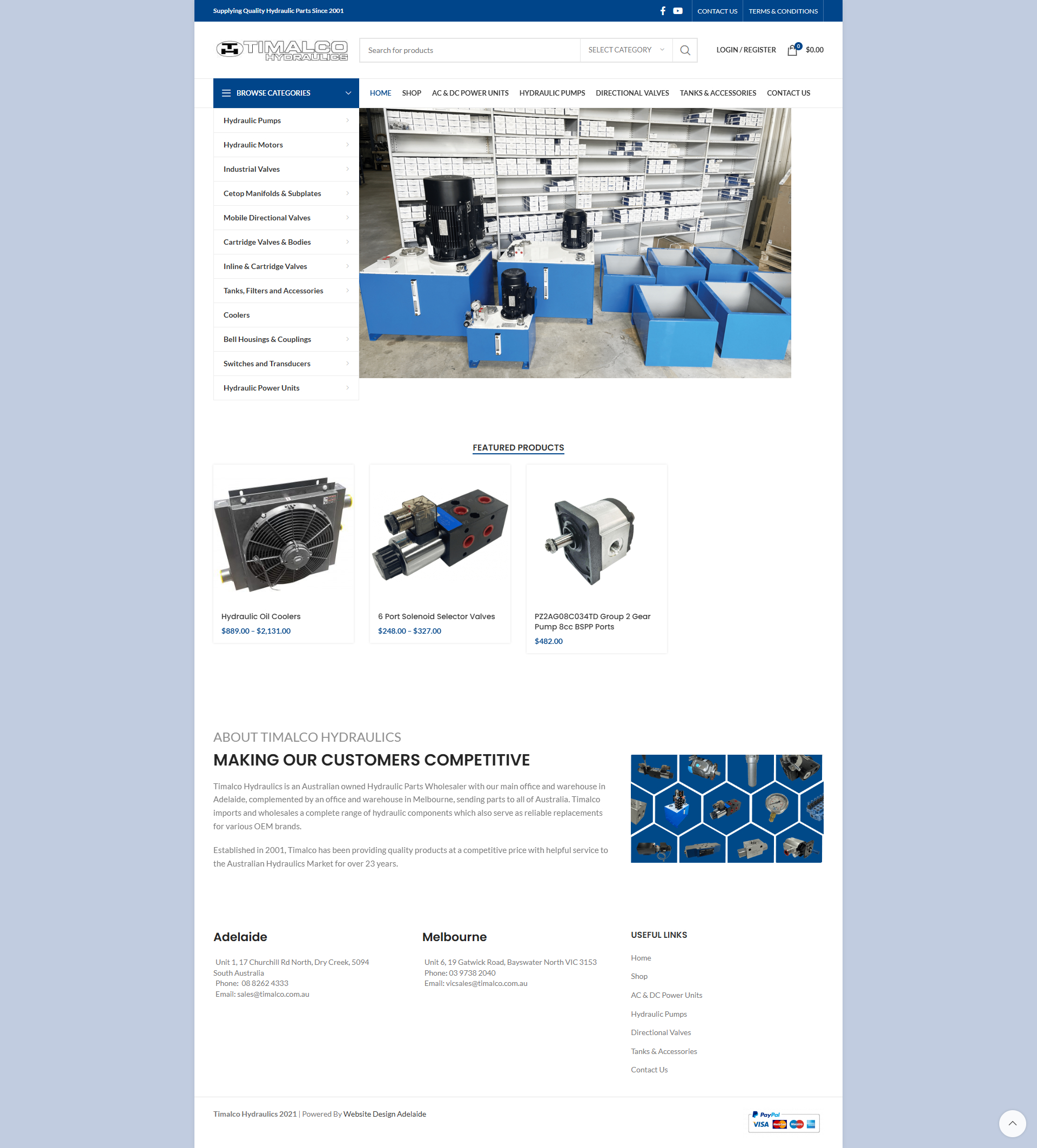 Timalco Hydraulics is an Australian-owned Hydraulic Parts Wholesaler with offices in Adelaide and Melbourne, sending parts to all of Australia. Timalco imports and wholesales a complete range of hydraulic components, which also serve as reliable replacements for various OEM brands. Established in 2001, Timalco has been providing quality products at a competitive price with helpful service to the Australian Hydraulics Market for over 23 years.